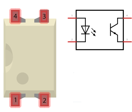 The picture on right shows the insides of the optocoupler. As you can see the left side, pin 1 and 2, is basically LED diode, that the controlling circuit uses to send a signal to the the other circuit.
