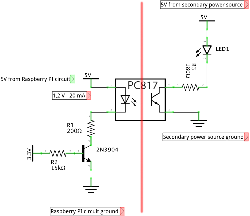 In our test here then we will be making Raspberry Pi GPIO pin send signal to transistor which then sends signal to optocoupler which will turn on light bulb in different circuit that uses different power source.