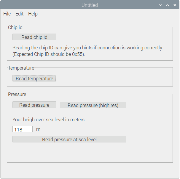Coding against this sensor is somewhat complicated but I have made it really simple as I created a Xojo class called BMP180 (see download