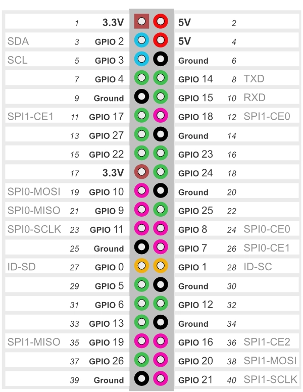 Raspberry Pi pin layoutIf you need more information about the GPIO headers on Raspberry Pi or other boards then click bellow.