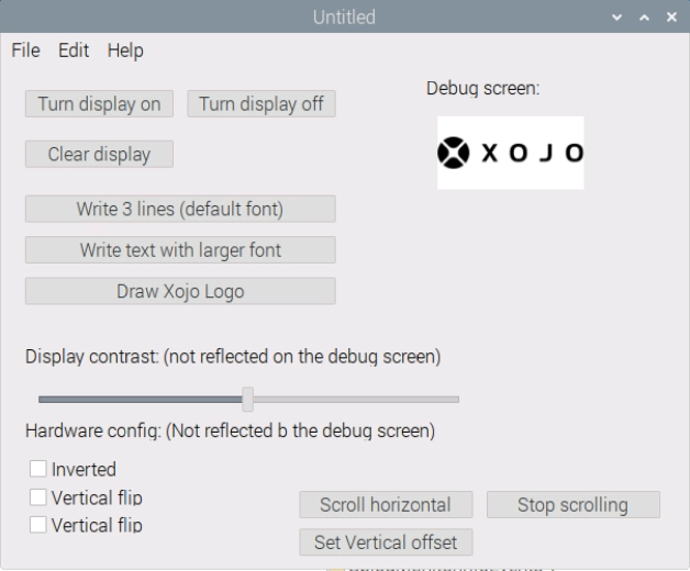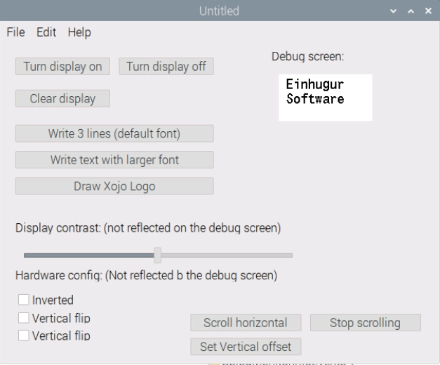 For the Xojo code we needed to make driver for this display as well as Font system to be able to write some letters because this is a dot based display and not character based display.